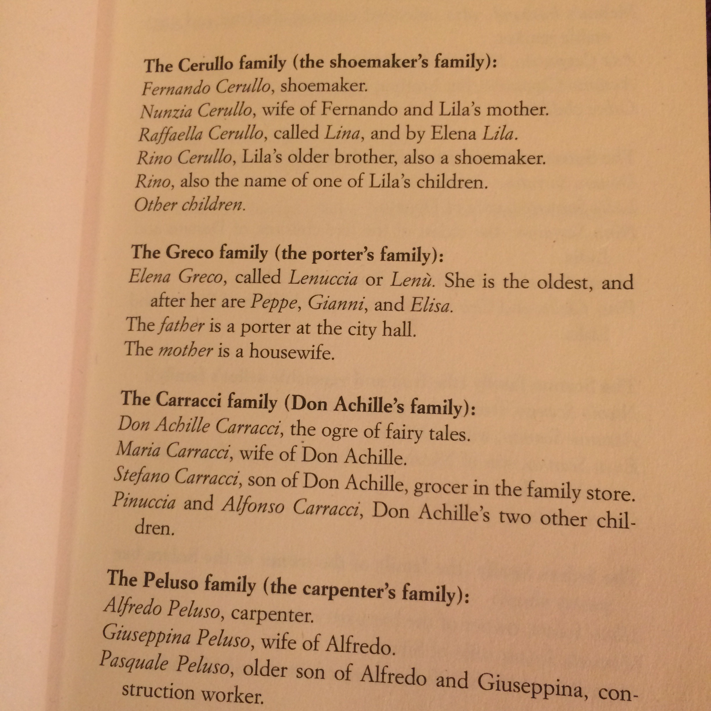 Another source of contention in the book group was the vast number of characters in the novel. The book even provides a directory at the beginning of the novel to inform the reader of all the various families and the nicknames used for certain characters, some of whom have two or three different names. In addition to this, some character names sounded so alike that it became confusing trying to remember who was who, for example, Antonio and Alfonso. Is this merely our ignorance of a different culture or is it simply a case of too many characters?